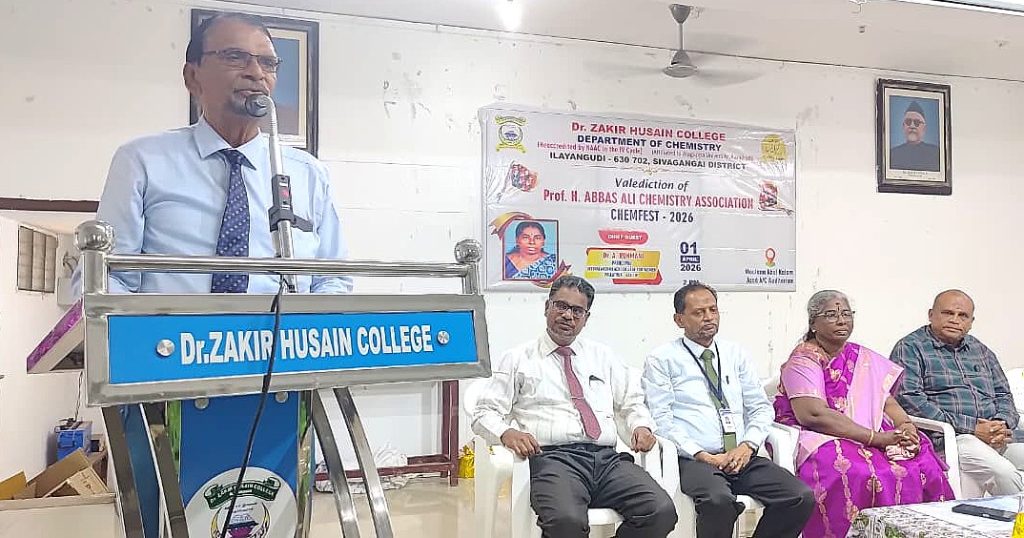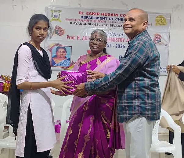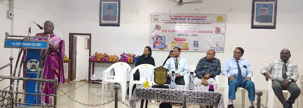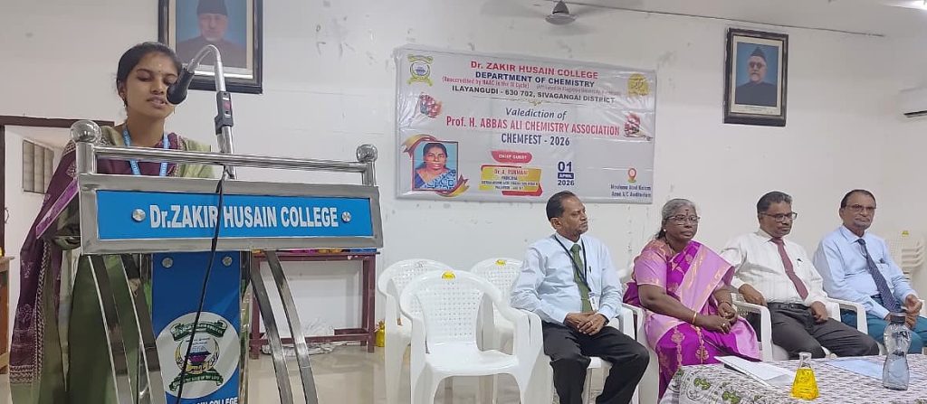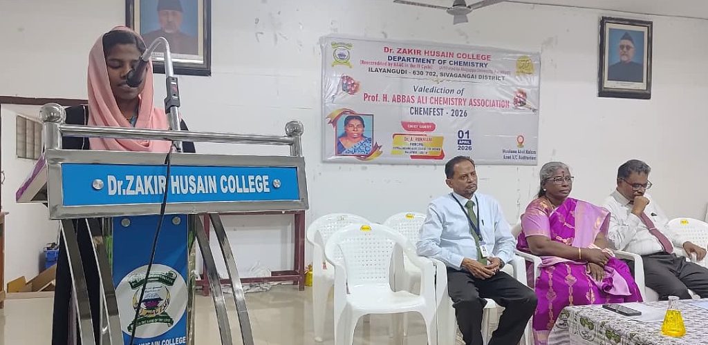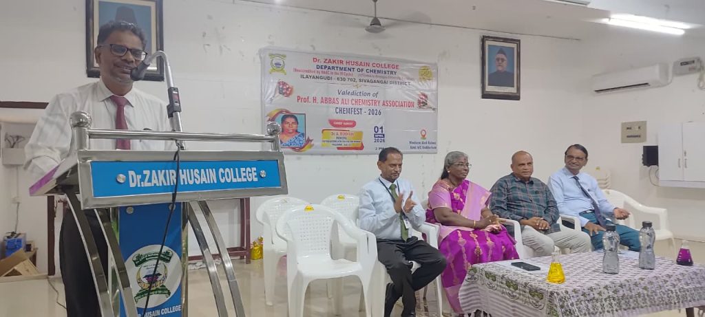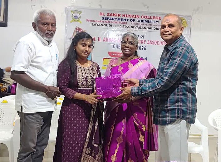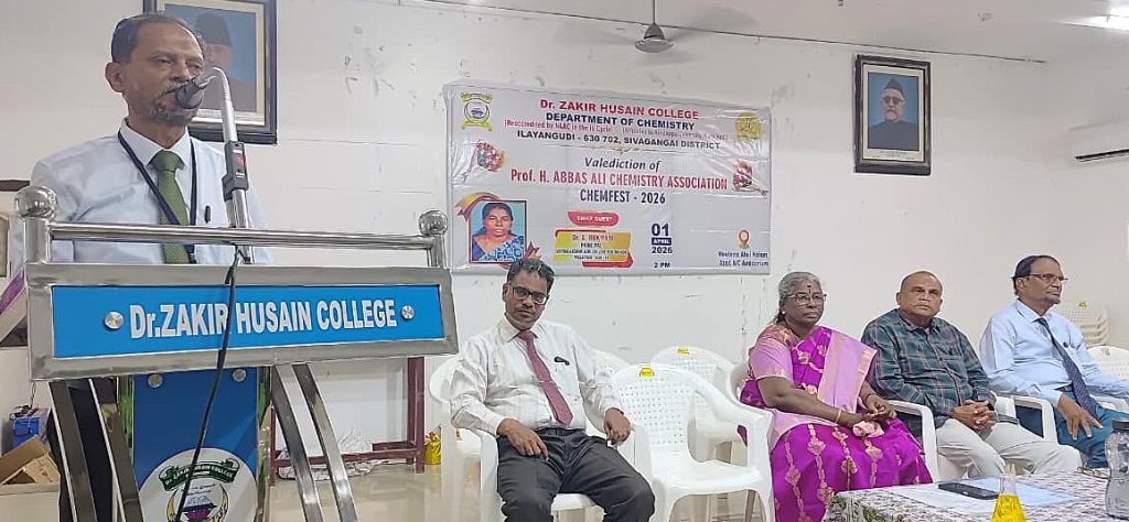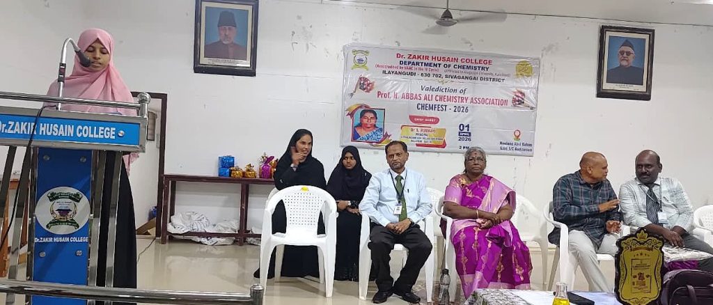 On behalf of the Chemistry Department, valediction of Professor H. Abbas Ali Chemistry association & CHEMFEST-2026 on 01.04.2026. S. Pragati, a third year undergraduate student, welcomed the gathering. The Principal of the College, Mr. S.E.A. Jabarullah Khan delivered the keynote address. The Principal of the College of Education, Mr. M.M. Muhammad Mustafa and the Head of the Department, Dr. K.A. Syed Abuthahir, delivered the felicitation address. A. Aartika, a third year undergraduate student, introduced the special guests. The special guest was the Principal of Seethalakshmi Aachi College, Pallathur, Dr. A. Rukmani, who delivered a special speech and gave away prizes to the students who scored the highest marks in the university examinations. The event was attended by professors, students and students including Mr. J. Abubakar Siddique, a member of the College Management Committee. participated. S.B. Asmathu Kader Nisa, a third-year undergraduate student, delivered the vote of thanks.