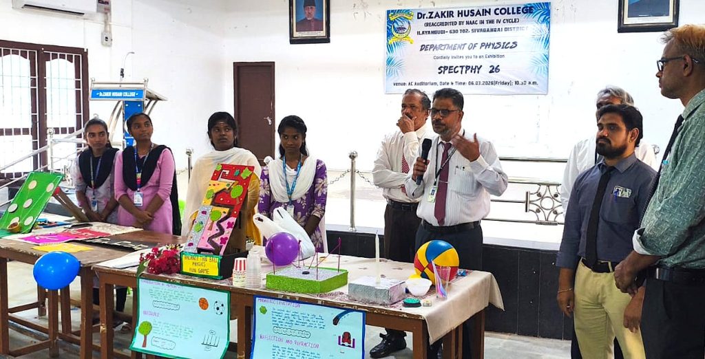 The Department of Physics organized a science exhibition (spectphy’26) on 06.03.26. About 1000 students of the college visited the exhibition and the participating students displayed their scientific discoveries. Various scientific games were also held to increase the scientific interest of the students. The exhibition was inaugurated by the Principal of the college, Mr. S.E.A. Jabarullah Khan. The Vice Principal of the college, Dr. A. Musthaq Ahmed Khan welcomed the students. The exhibition was organized by the Professors of the Department of Physics, Mr. P. Kaleel Ahamed, Dr. K.A.Z. Syed Abuthahir, Dr. S. Haja Muhaideen, Dr. S.J. Helen, Dr. G. Radha and the students of the Department of Physics.