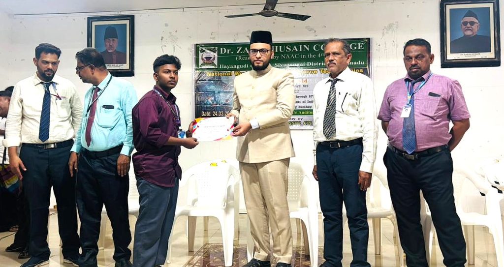 A National Seminar on “Open Source Software” was held on 24.03.2026 on behalf of the Department of Postgraduate Computer Science. Shobana Sri, a first year Data Science student, welcomed the gathering. The Principal of the College, Mr. S.E.A. Jabarullah Khan, delivered the keynote address. The Vice-Chancellor of the College, Dr. A. Mushtaq Ahmed Khan and the Head of the Department, Dr. A. Arif Rahman, delivered the felicitation address. Assistant Professor A. Rawther Naina introduced the special guests. The special guest was Mr. M. Muhammad Qasim Khan, Senior Researcher, FOSSEE GIS, National Coordinator, IIT-Mumbai, who delivered the special address. The event was attended by departmental students and professors. Finally, S. Sivashakthi, a third year Bachelor of Computer Science student, delivered the vote of thanks.