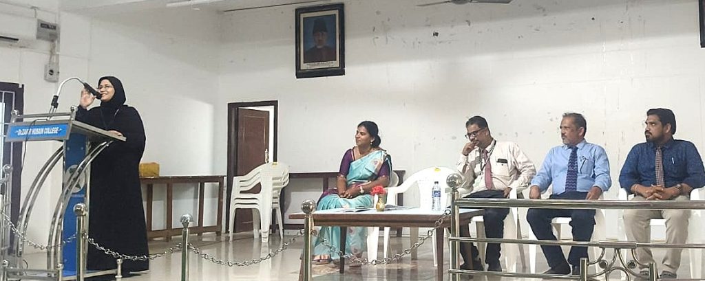 The college Science Club and Nature Club held a closing ceremony and book release ceremony on 04.04.2026. The closing ceremony of the Nature Club was held in the morning and was welcomed by the Vice Principal of the College, Dr. A. Mushtaq Ahmed Khan. The Principal of the College, Mr. S.E.A. Jabarullah Khan delivered the keynote address. The Club Coordinator, Dr. E. Roshan Ara Begum introduced the special guests. The Head of the Department of Botany, Lady Dock College, Madurai, Dr. G. Priscilla Sweetlin attended as the special guest and delivered a special speech. A book titled “Medicinal Plants in the Dr. Zakir Husain College Campus” was also released at the event.