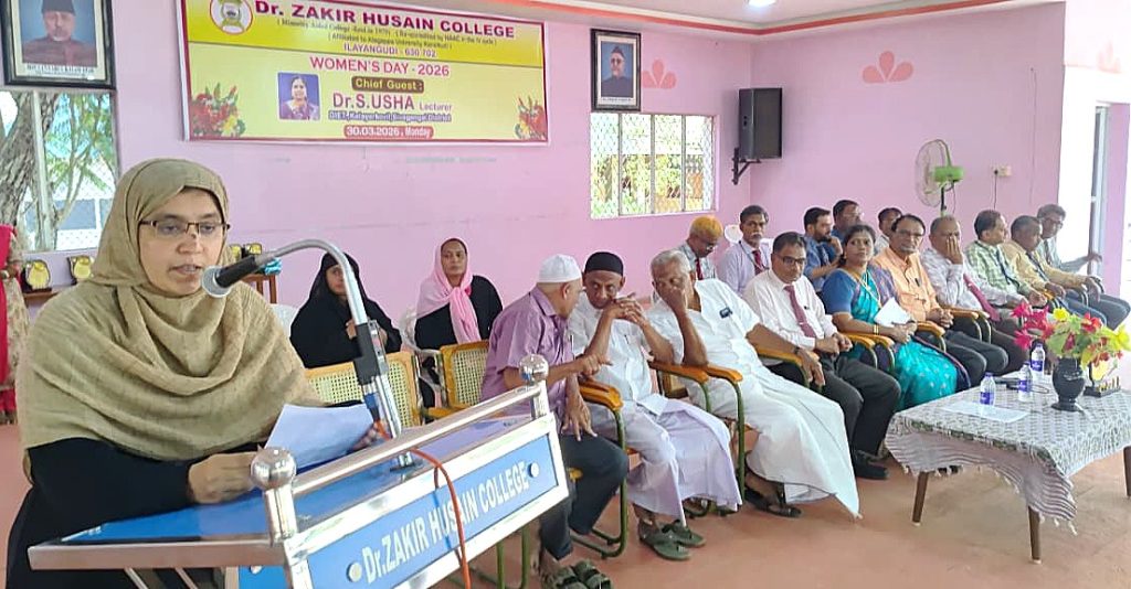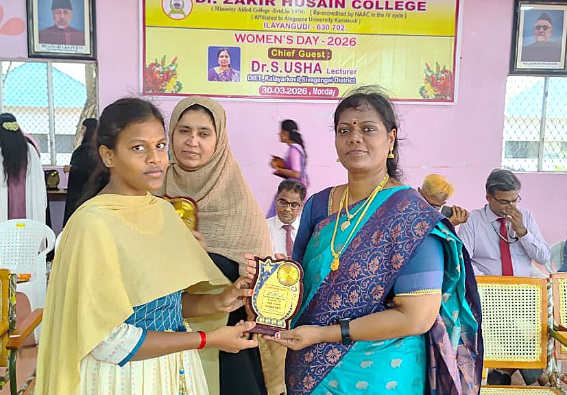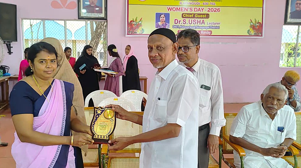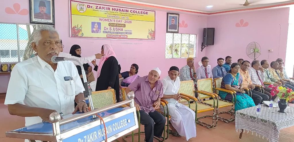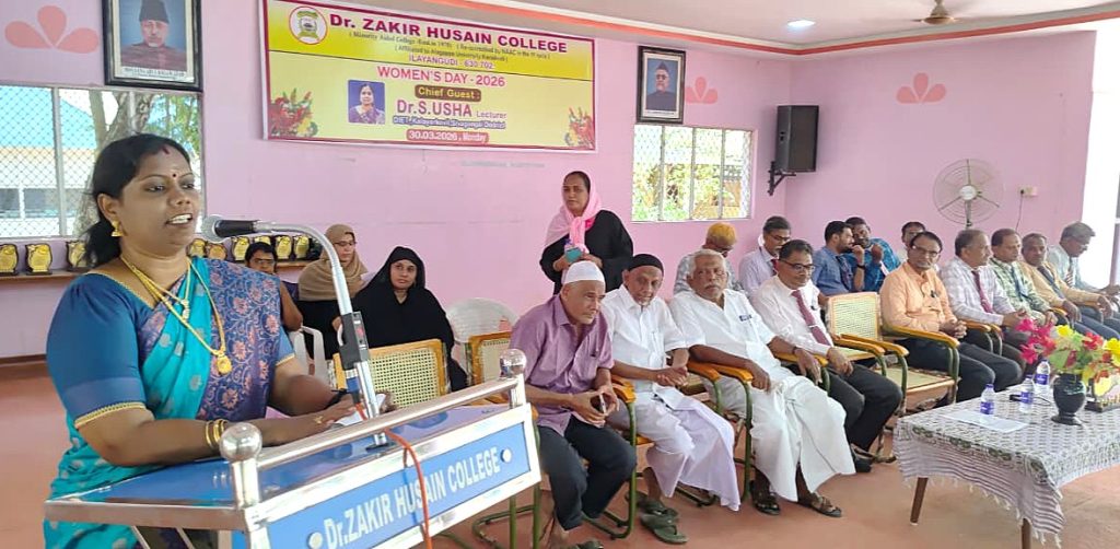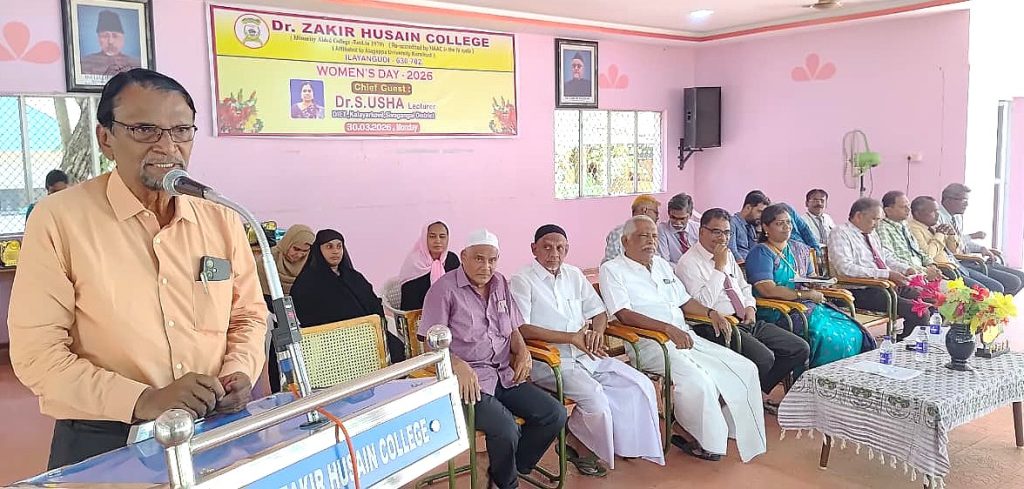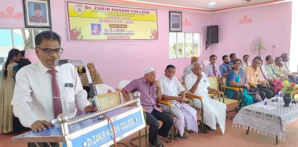 Women’s Day Celebration was held on 30.03.2026. K. Jameera Banu, a second year undergraduate student of Tamil Department, welcomed the gathering. Janab V.M. Jafarullah Khan, Secretary of the College delivered the keynote address. The Principal of the College, Mr. S.E.A. Jabarullakhan, and the Principal of the College of Education, Dr. M.M. Muhammad Mustafa, delivered the felicitation address. Dr. S. Asmathu Fatima, Head of the Department of Botany, introduced the special guests. Dr. S. Usha, Lecturer, District Educational Research Institute, Kalayarkovil, Sivagangai District, attended as the special guest and delivered the special address. Prizes were given to the winners of various competitions at the event. The event was hosted by D. Priyadarshini and V. Anjali, third year undergraduate students of Physics Department. The event was attended by college management committee member Alhaj A.S. Naseer Khan, self-financed course director Dr. A. Sabinullah Khan, professors and students. Finally, second-year postgraduate Tamil student S. Chitra gave the vote of thanks.